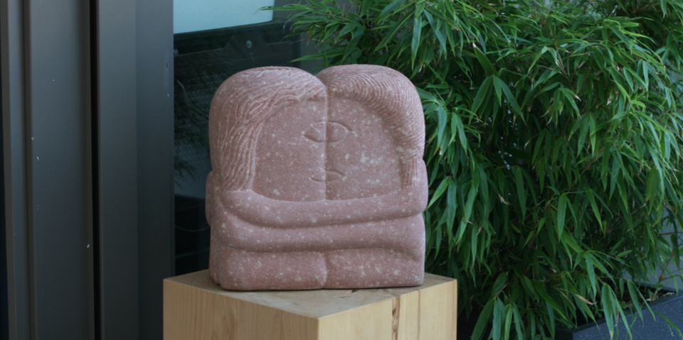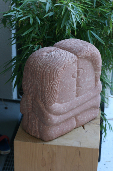 In Anlehnung an Brancusi: Ein eng umschlungenes Liebspaar im innigen Kuss vereint. Ein Geschenk für meine Tochter und meinen Schwiegersohn und daher eine sehr persönliches Skulptur, in der ebenso viel Liebe steckt, wie in ihrer Botschaft.