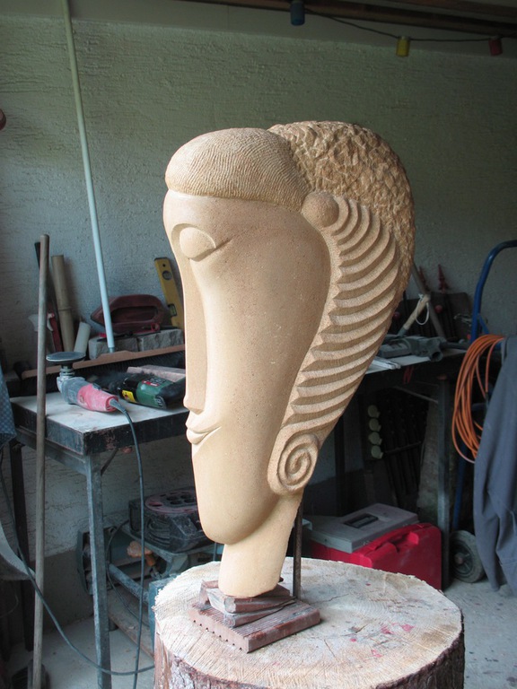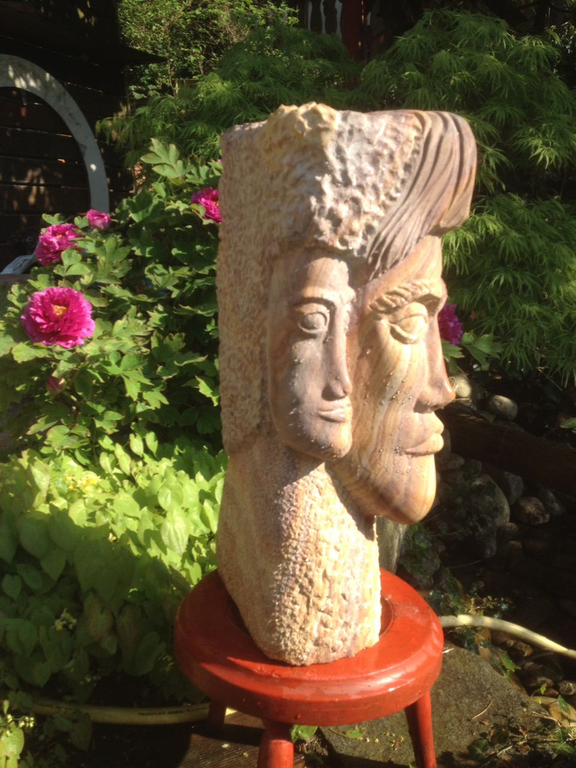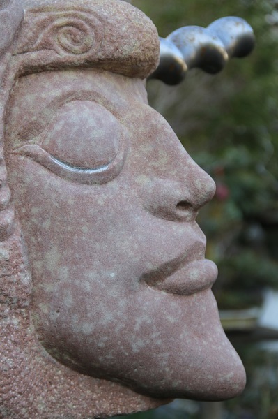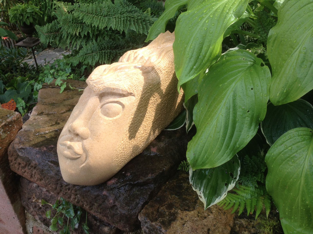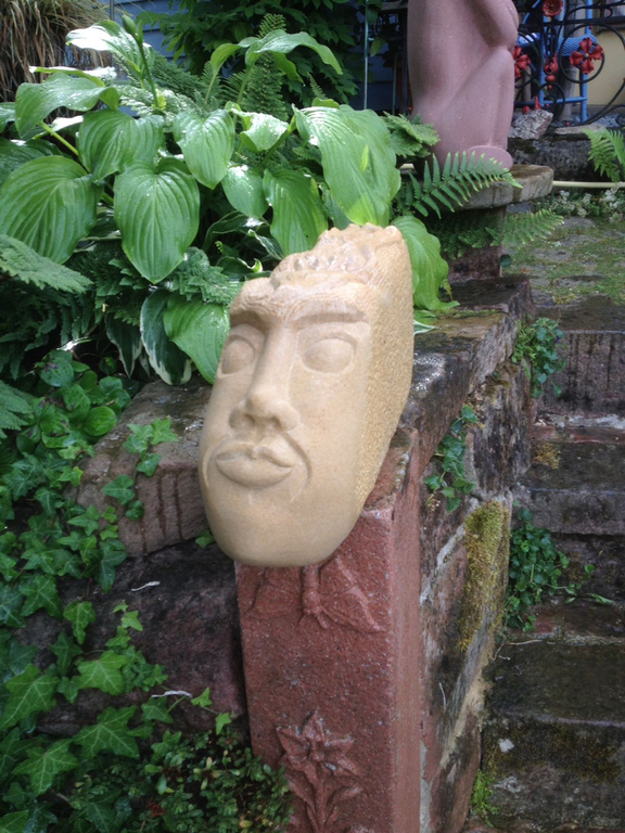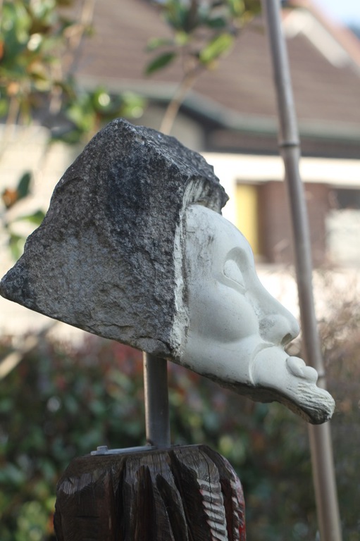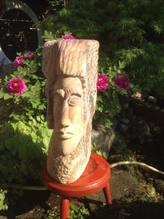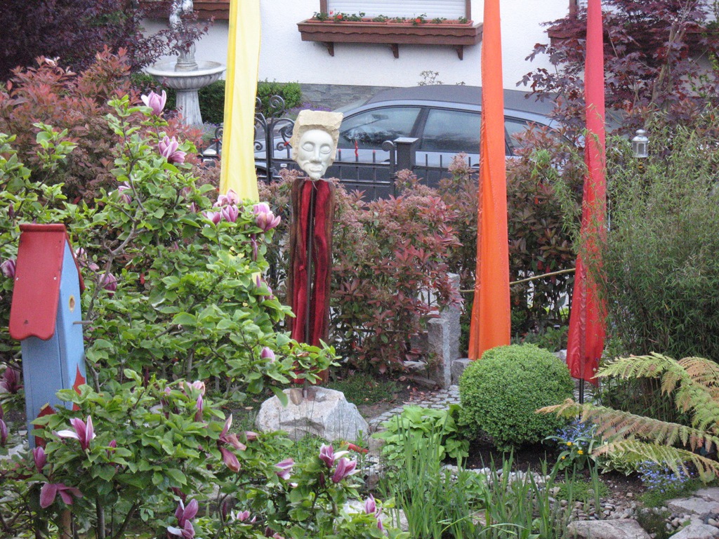 Er ist eine der Figuren, zu denen ich eine besondere Beziehung habe, DER EINSAME war schließlich auch der Erste. Und wie es sich für den Erstgeborenen gehört, hat er auch ein besonderes Plätzchen gefunden: DER EINSAME thront auf seinem geschnitzten Holz-Sockel über meiner zweiten Lebensleidenschaft neben der Bildhauerei: Meinem asiatischen Garten.