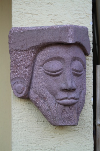Inspiration für Kopfschmuck und Bartgestaltung dieser Wächterfigur ist Bes, eine zwergenartige Gestalt aus der agyptischen Mythologie.