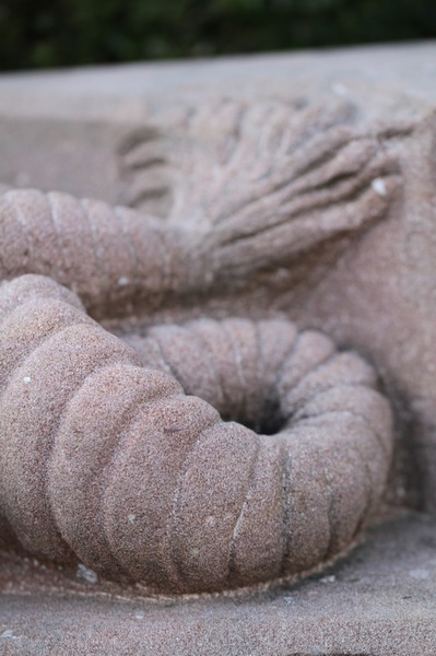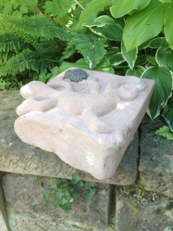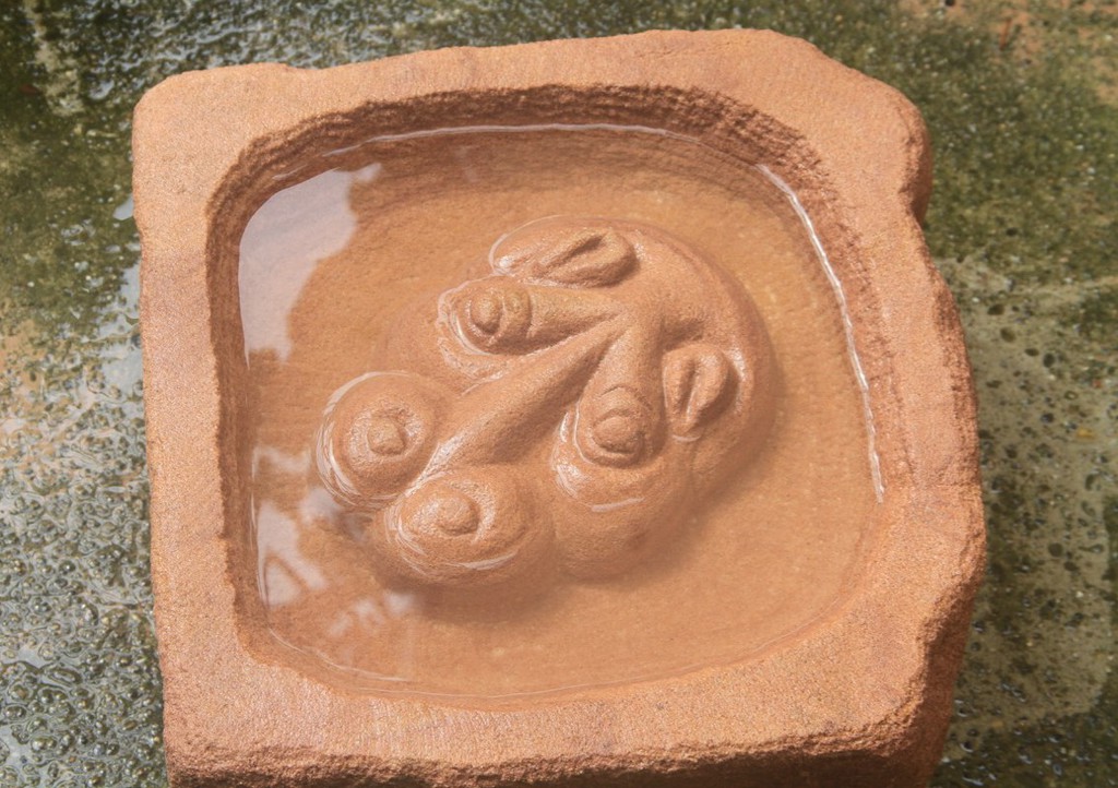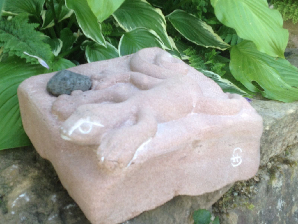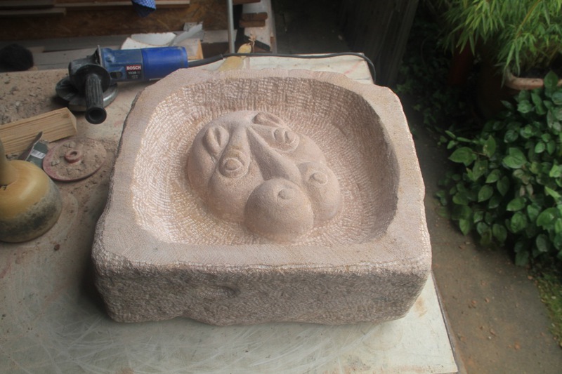 Die als Vogeltränke konzipierte Skulptur zeigt ein föhliches Flußpferd beim Planschen - eine leichte und verspielte Figur, die mir beim Hauen sehr viel Freude bereitet hat.